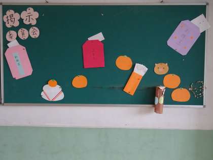 1月の掲示委員会の掲示板です。正月に関係する飾りが掲示してあります。