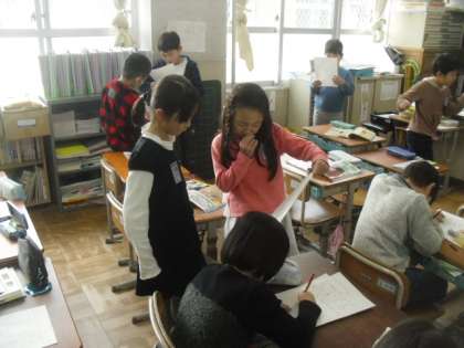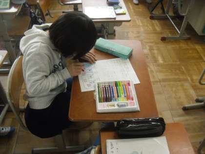 ”いまの自分”についてカードにまとめています。その発表に向けてそれぞれが練習をしています。