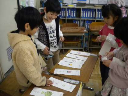 ものの名まえの学習を生かして,おみせやさんごっこをしました。みんなお客さんを呼ぶために話す工夫をしていました。