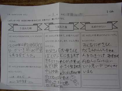 生まれた時の自分のことについてまとめ,自分の成長について考えました。