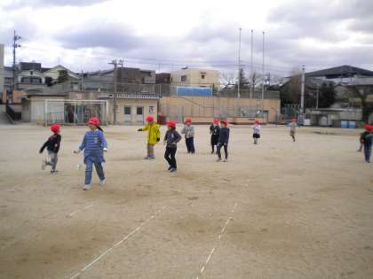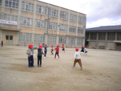 できたおもちゃを持って,早速外で遊びました。風に乗ってクルクル回りました。