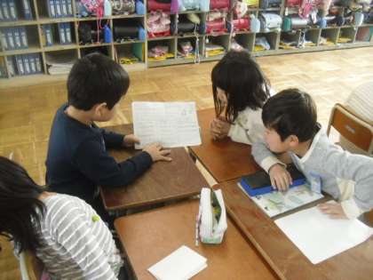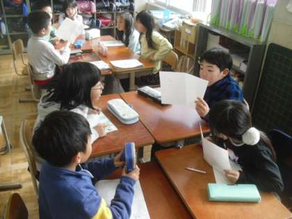 お家で調べてきた,今までのわたしについて,班の人達と交流をしました。