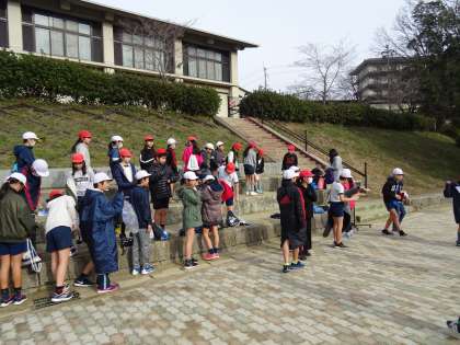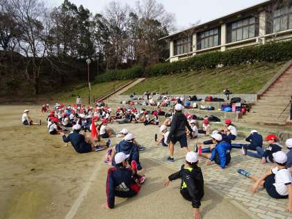北堀公園で開催される最後の持久走記録会です。到着後,6年生は準備運動を始めました。