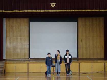 児童会・運営委員会から学校生活についてのふり返りの説明が行われました。