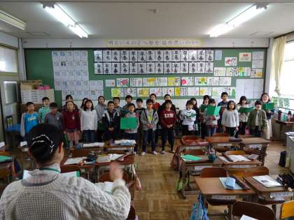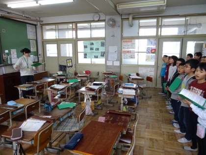 学級全員で合唱をしました。きれいな歌声が廊下まで響いていました。