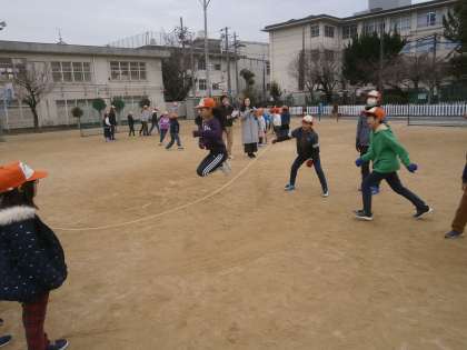 この日は,次の週に行われる大なわ大会に向けて,各班で練習を始めました。