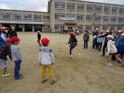 大なわ大会に向けて,たてわりグループで練習をしています。今日は6年生が卒業遠足のため不在でしたが,5年生を中心に活動を楽しみました。