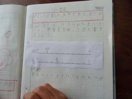 数直線図から小数と分数の大きさをくらべました。