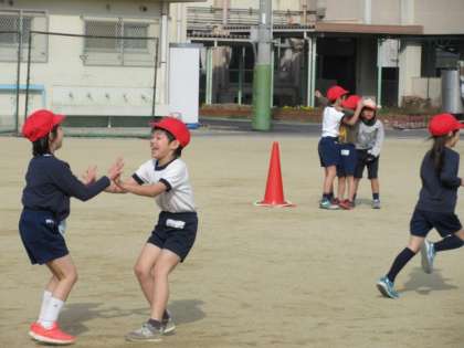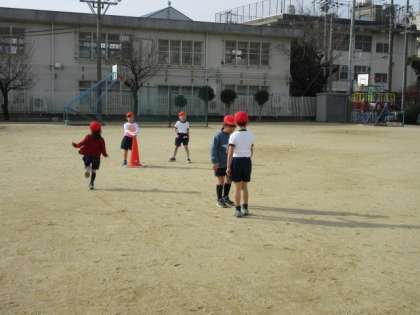 いいお天気の運動場で,じんとりあそびを楽しみました。