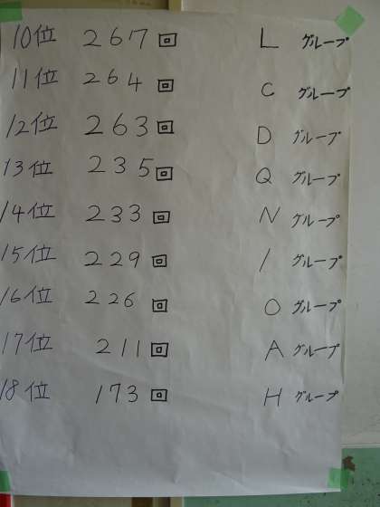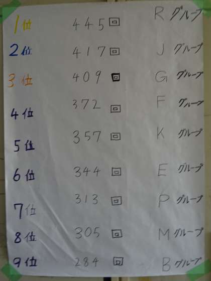 北校舎1階に大なわ大会の結果が掲示されています。445回も跳んだグループがありました。