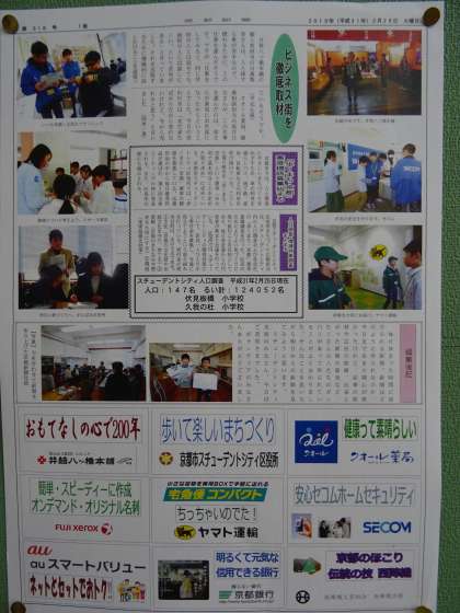 スチューデントシティ学習で,「京都新聞社」ブースの編集デスクの児童が中心になって作成した新聞が掲示されています。