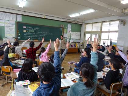 舞鶴港は日本各地や外国とどのようにつがっているか予想し,話し合いました。