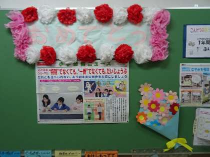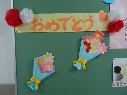 保健室前にも,卒業を祝う掲示物が掲示されています。
