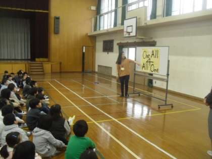 学年集会をひらきました。今年度の学年目標は『One 4 All All 4 One』です。