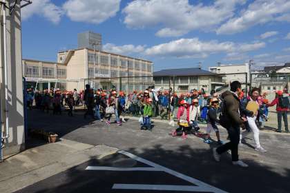 今日は1年が入学してから初めての町別集会が行われました。入学してから1週間,1年生を新たに迎えて,順調に登校できているでしょうか。今日,班長・副班長を中心に並び方,危険な場所を確認しましたので,明日からまた町別ごとに安全に気をつけて登校しましょう!