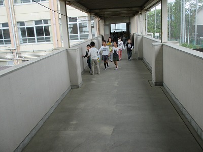 2年生につれてもらい,学校の中を探検しました。ほかの学年は授業中のため,静かに見て回りました。職員室の前でも静かに歩いています。いつも優しく2年生が手をつないでくれています。