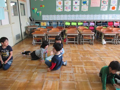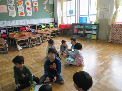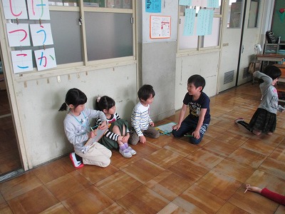 探検を終えて教室に戻ったグループは,どの教室に興味をもったかを話し合い,その後は2年生に遊んでもらいました。