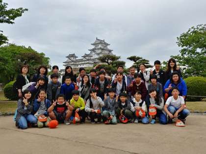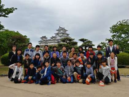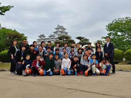 世界文化遺産・国宝の姫路城に無事到着です。クラス記念写真を撮影しました!