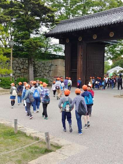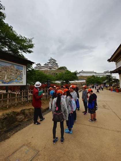 楽しみにしていた姫路城の見学が始まりました。歴史ガイドさんの丁寧な案内のもと,歴史を感じながら城内を見学していきます。