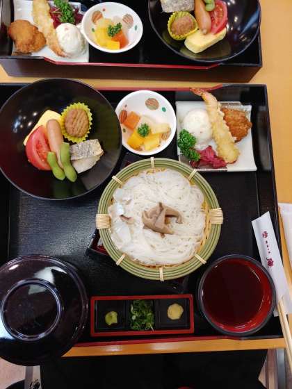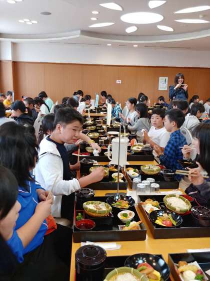 姫路城見学の後,みんなで「揖保の里」で昼食を食べました。メインのそうめんがとってもおいしそうです。お土産もあるそうですよ!みんなで食べる食事は見ている想像以上に格別な味でしょうね。