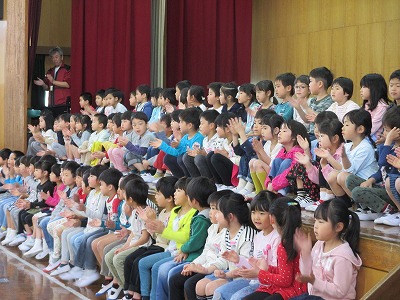 6年生と手をつないで入場し,ハイタッチをしている時の子どもたちの笑顔はとてもすてきでした。1年生も伏見板橋小学校の一員として迎え入れてもらいました。他学年の歌を聴いている時に自然と手拍子をしたり,体を動かしたりしている人もいました。全校のみんなから歌や言葉のプレゼントをもらい,すてきな時間となりました。