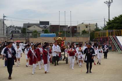 本日は金札宮祭礼です。本校運動場でも神輿巡行が行われました。