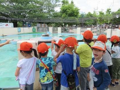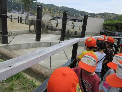 いろいろな動物がいます。それぞれの動物を一生懸命見ていました。1年生と2年生のなかよしグループでクイズに答えながら動物園を一周しました。