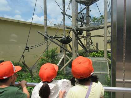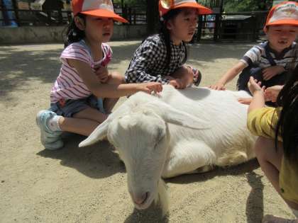 実際にやぎと触れ合える場所もありました。「ふさふさしている!」という声が聞こえてきました。他にも高くのぼったチンパンジーを見て「あんなに高いところにのぼっている!」などいろいろな発見を楽しんでいました。