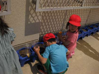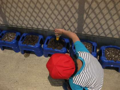 たねをよく観察し,植え,肥料を与え,水をやりました。
