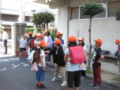 前期学級代表の子どもたちが,朝に校門であいさつ運動をしました。