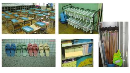 1年生は,机や椅子,トイレのスリッパや掃除用具などを