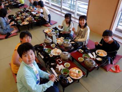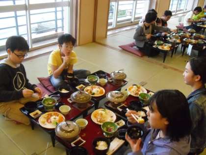 夕飯もホテルの料理をみんなで楽しく食べていました。