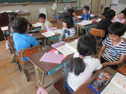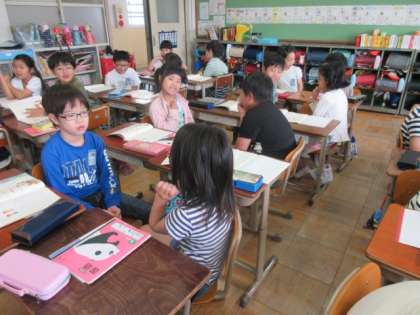 よい聞き手のしせいはどんなしせいでしょう。みんなで考えてペアで話を聞きあいました。目を見てうなずきながら聞いてもらえて嬉しかったという感想が出ました。