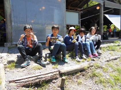 さばいた魚を炭火で焼き、食べました。焼きたては本当においしく、しっぽも骨も全部食べた人も多かったです。感謝して、おいしく命をいただきました。