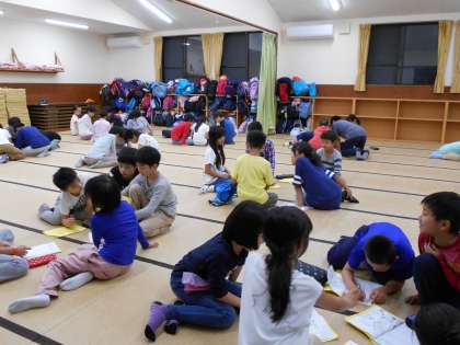 その後、各班に分かれ、係からの伝達をし、さらに班で振り返りをしました。