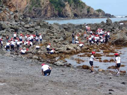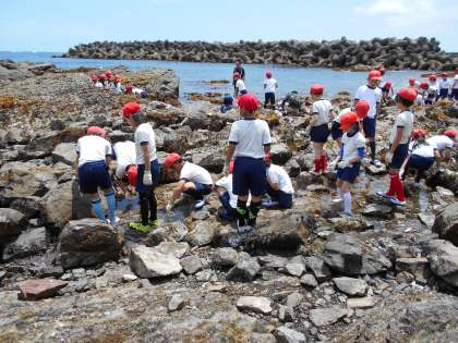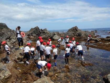 みさきの家ならではの活動、磯観察です。活動の時間がちょうど干潮の時間帯に当たり、めったにないほどの状態で磯観察をすることができました。たくさんの様々な生き物を見つけ、手に取って触ったり観察したりすることができました。みさきの家の先生もびっくりされるくらい、大小様々なタコを何匹も見つけました。夢中で過ごしたあっという間の2時間でした。