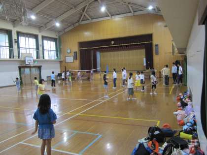 土曜学習後,学校運営協議会・体の委員会の皆様を中心に多くの児童が体育館でバドミントンを楽しみました。