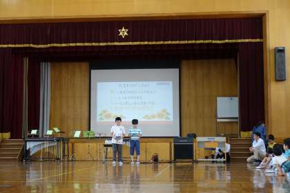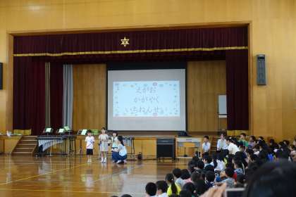 本日児童集会が行われました。各クラスの学級目標を代表の児童が発表しました!