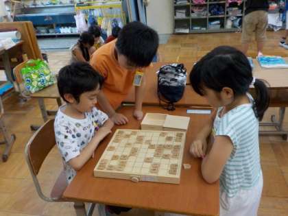 一緒にコマを回したり,将棋で勝負したり,サイコロゲームをしたりして楽しみました。