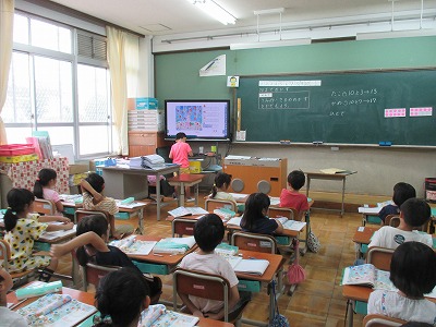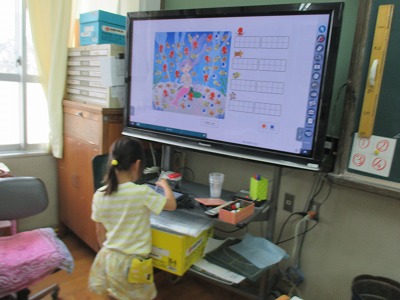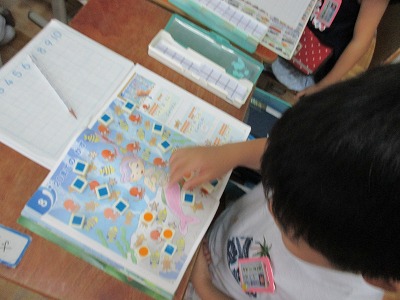 数図ブロックを使って活動を行い,10より大きい数の学習をしました。デジタル教科書で意欲的に問題を解いていました。