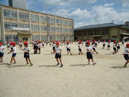 今日は,運動に出て並んでみました。今週は,運動場で踊る位置を考えながら進めて生きます。暑さの中,みんなとてもがんばっていました。