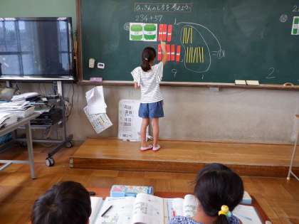 今日は「3けたの数のひっさん」の学習をしました。今までに学習したことを使って,どうやって計算するとよいか,みんなで考えました。