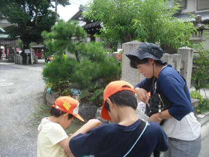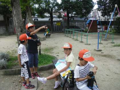 生活単元科の学習で,校区マップを作るために外へでかけました。普段通っている道や,見慣れている場所も,改めて見てみると「ここからは電車がよく見えるから楽しいね。」「屋根に鬼の顔があるから少し怖い場所だ。」等,発見がたくさんありました。学習を進めて,どきどきわくわくするマップを作ろうと思います。