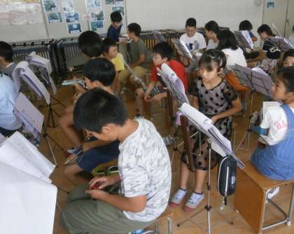 6年生は音楽科で「リズムでアンサンブル」を学習しています。