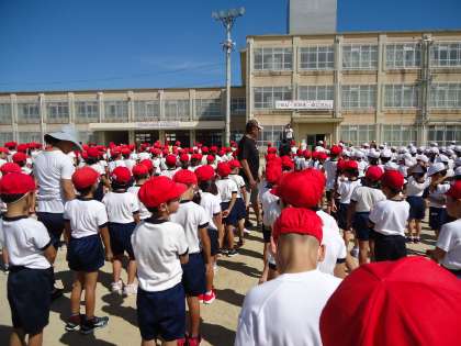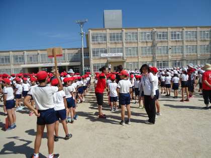 運動会に向けて開会式の練習をしました。暑いので,休憩を入れながら,開会式とエントリーの並び方をしました。よく頑張りました。