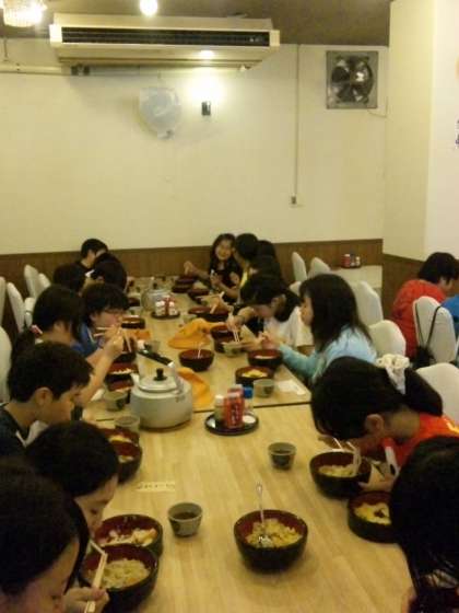 リズムのいい曲に合わせて、みんなのりのりでうどんを作りました。