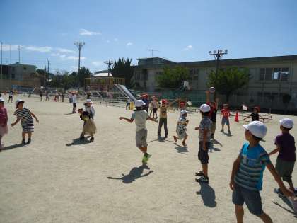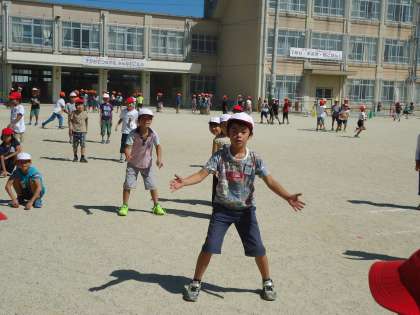「遊び」係りの人たちが『みんなでドッジボールをしよう』とクラス遊びを計画しました。中間休みになると,一斉に運動場へ出て,楽しく遊ぶことができました。