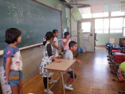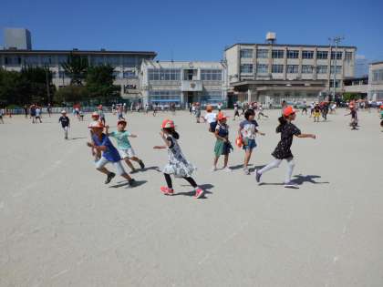遊び係さんがみんなに提案して,中間休みにクラスのみんな遊びをしました。鬼ごっこで運動場を駆け回って楽しみました。教室に戻ると,「楽しかったから,またしたいな。」という声。帰りの会で,遊び係さんと話し合い,「またやろう。」ということになりました。自分たちで計画して,楽しめる係活動を進めることができています。