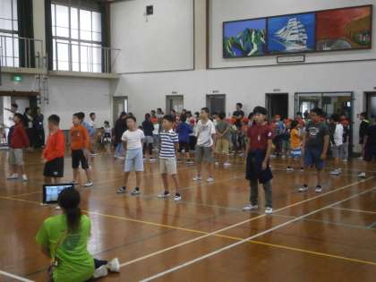 その声につられてか,低学年の子を中心に,一緒に応援練習をしていました。