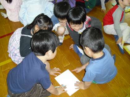 最初の1時間は1・2年生の顔合わせをし,